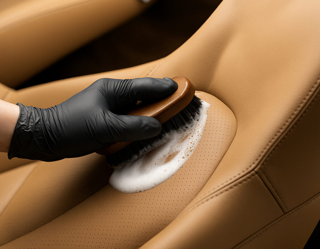 Professionelle Reinigung von Ledersitzen, Lenkrad und allen Lederflächen im Innenraum.